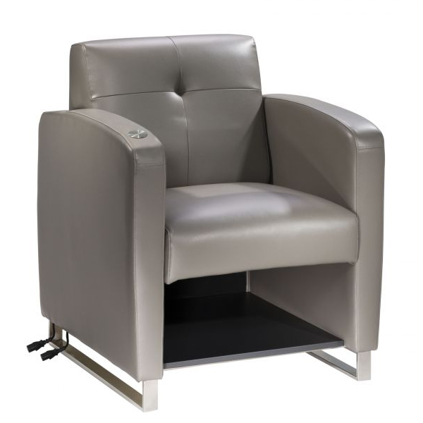 Tech Chair, No Tablet, Gray Vinyl, Chrome Base