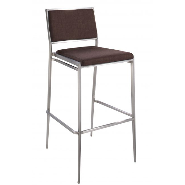 Marina Barstool, Brown Fabric, Brushed Metal